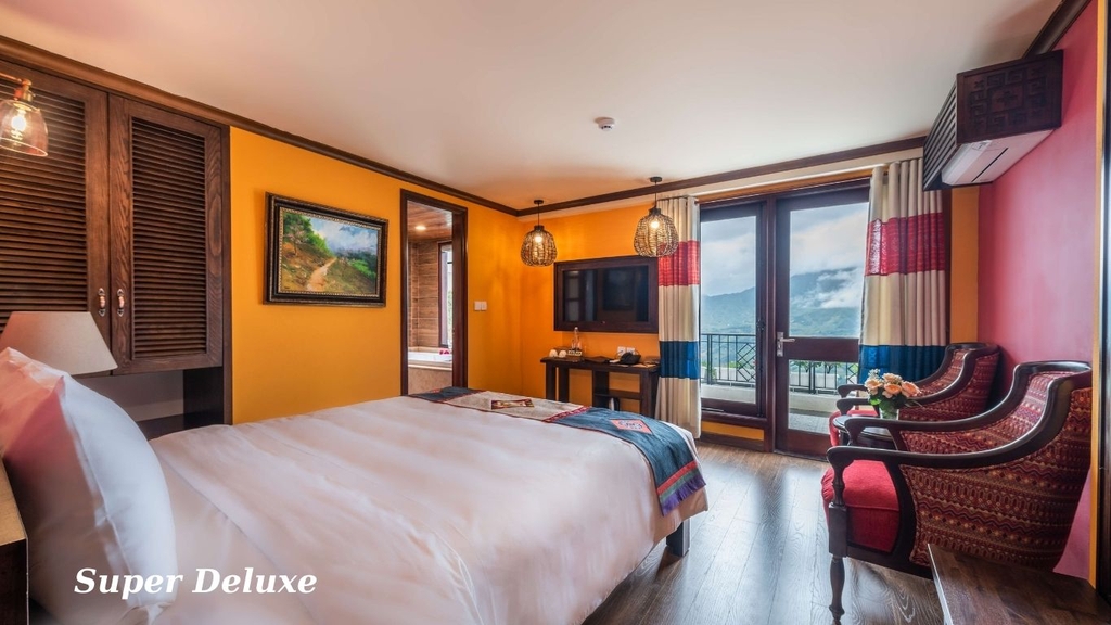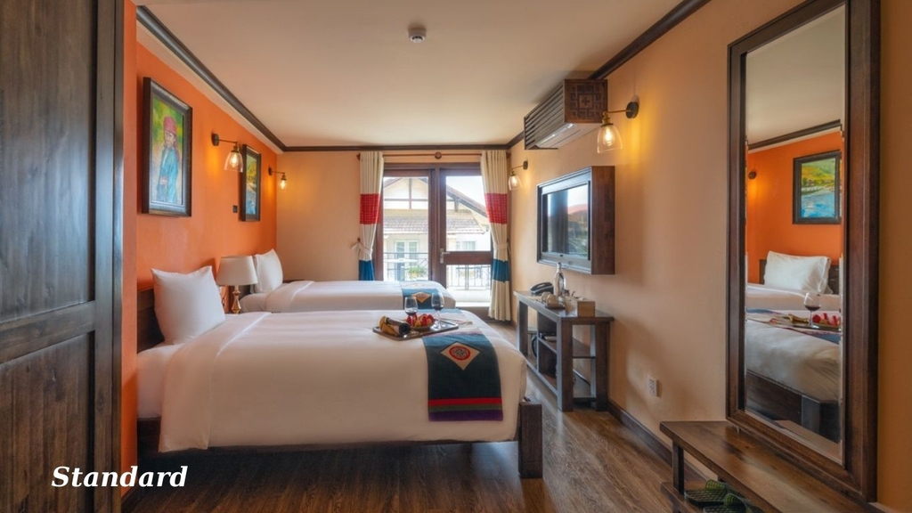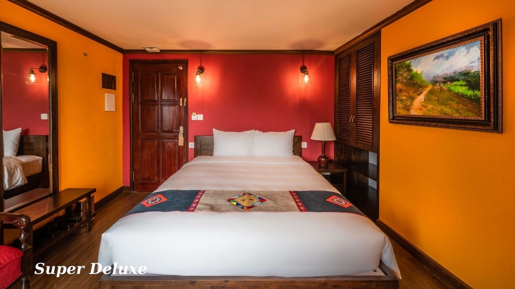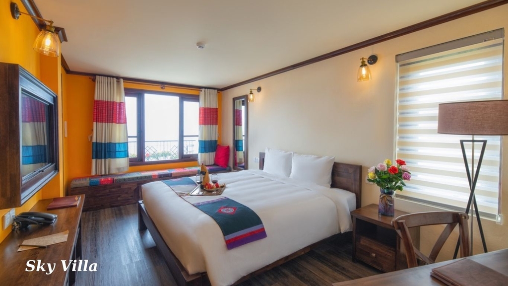 Khách sạn Cat Cat Galerie d’Art nằm ngay trung tâm thị trấn Sa Pa, tại số 46 Phan Si Pang là điểm dừng chân lý tưởng cho những ai muốn vừa nghỉ ngơi thoải mái vừa thuận tiện khám phá thị trấn mờ sương. Khách sạn mang phong cách ấm cúng pha chút nghệ thuật tinh tế, với nhiều hạng phòng đa dạng từ Standard tiện nghi cho cặp đôi đến Sky Villa sang trọng dành cho gia đình hoặc nhóm bạn, sức chứa từ 2–6 người lớn kèm trẻ em.