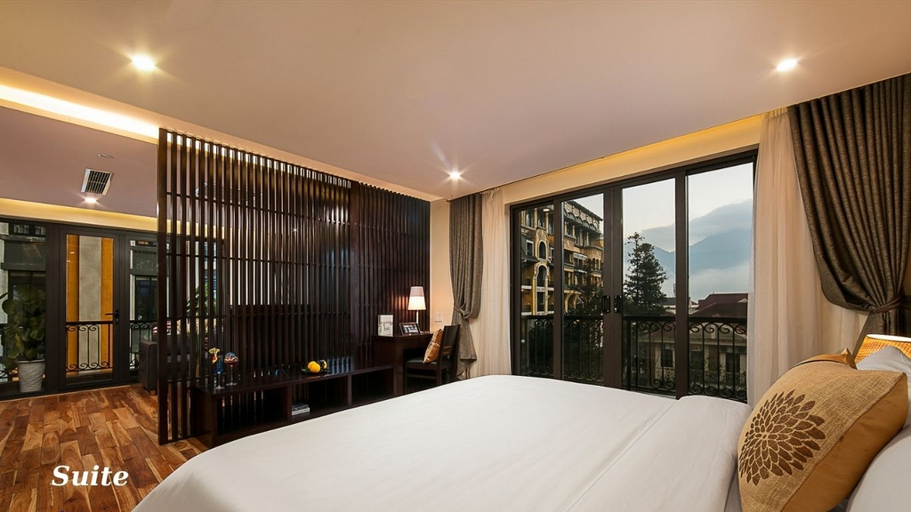 Hệ thống phòng nghỉ đa dạng, view núi và thung lũng tuyệt đẹp. Tiện ích đi kèm gồm: nhà hàng, spa, quầy bar, phòng hội nghị và dịch vụ đặt tour khám phá Sapa. Đây là lựa chọn lý tưởng cho kỳ nghỉ gia đình, nhóm bạn hay các đoàn công tác.
