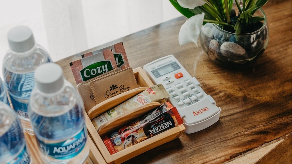 - Miễn phí 01 chai nước khoáng/người/ngày, trà và cà phê hằng ngày.