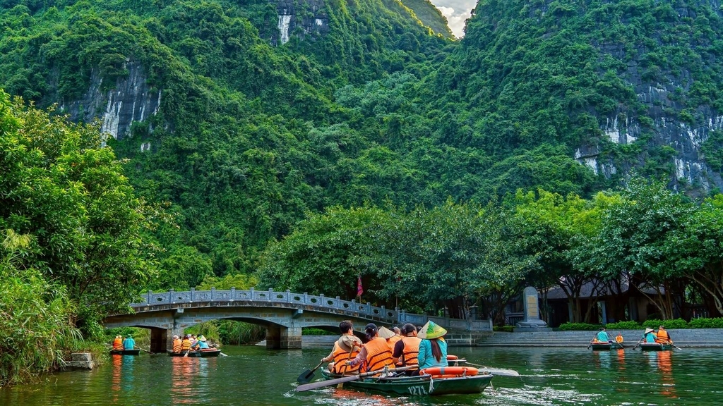 Lựa chọn 2: Tràng An, Di sản Thế giới được UNESCO công nhận vào năm 2014. Tại đây, quý khách có 1,5 tiếng tham quan trên thuyền nan để thưởng ngoạn vẻ đẹp thiên nhiên với hệ thống hang động đường hầm kỳ vĩ đã từng xuất hiện trong phim “Skull Island”, phiên bản mới của Kong năm 2016.